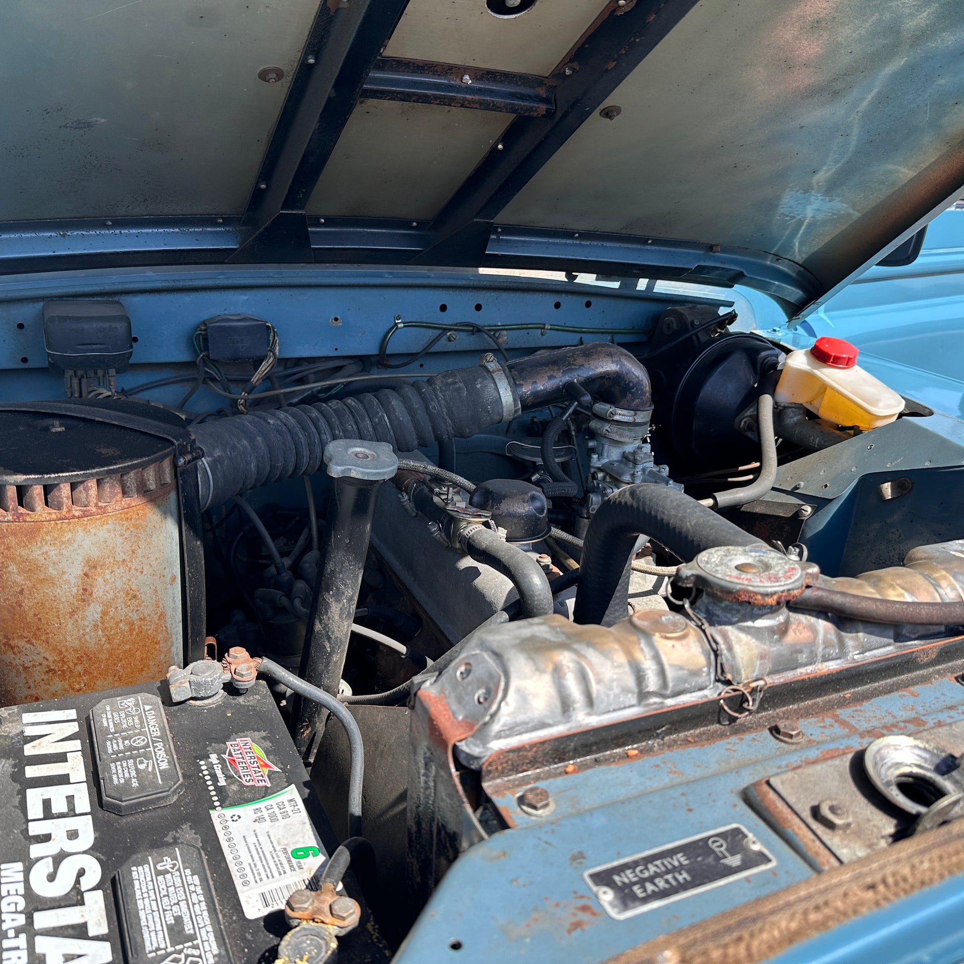The Land Rover was repainted approximately 14 years ago by a previous owner. While the exact date and year of the respray are not documented, the paint has held up well and still presents nicely, showing only light signs of age and use. The work was done in the classic Marine Blue, staying true to the Series IIA’s original character and enhancing its timeless vintage appeal.