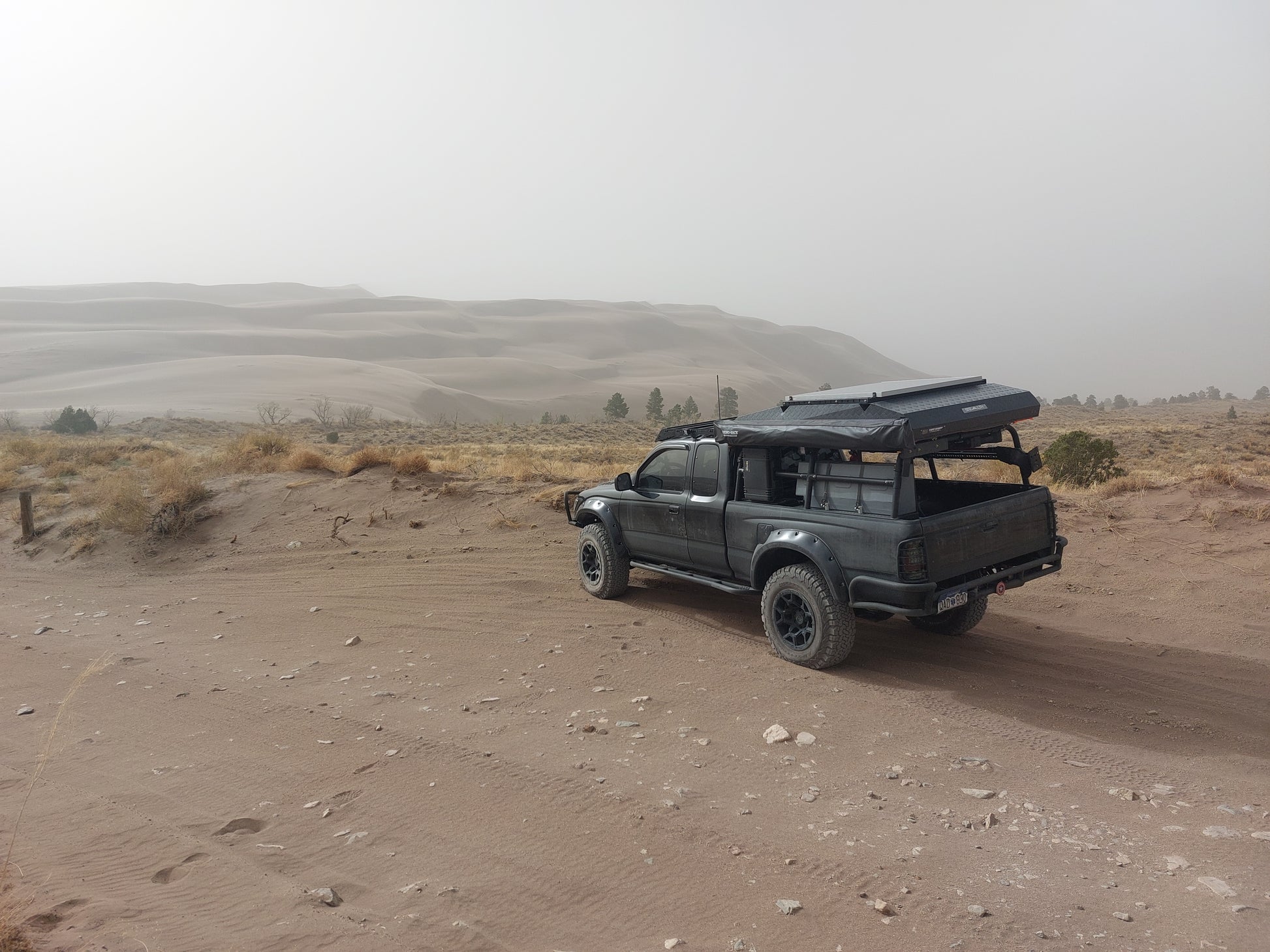-no frame rust! Treated AND reinforced! -Full suspension rebuild: Fox adjustable front 2.5 dual reservoir shocks with 700lb coil over rear Icon 2.0 dual reservoir OME leaf pack expansion Icon upper control arms solo motorsports lower control arms rear suspension air bags with cradles to not limit suspension articulation -1 in daystar body lift -upgraded RCV cv axles, nickel plated -Reinforced spindles, upper control arm gussets and cam tabs -Prinsu roof rack -Smittybilt 9.5k winch with synthetic rope -LED headlights, tail lights -dual battery with solar and Redarc power manager -ARB onboard dual air compressor -Heretic and Rigid light bar and various pods with switch pro control panel -king hydraulic front bump stops -All pro offorad front/rear bumpers/sliders -All pro offroad bed rack customized with removable load panels, onboard water with RV pump, and inverter -bedslide cargo slide. Roof tent, awning and solar panel are NOT included in the sale.
